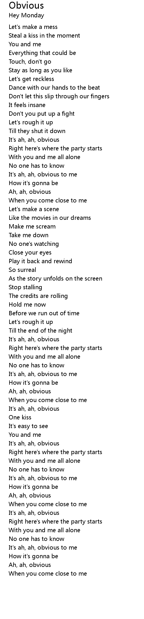 It's ah, ah, obvious to me |