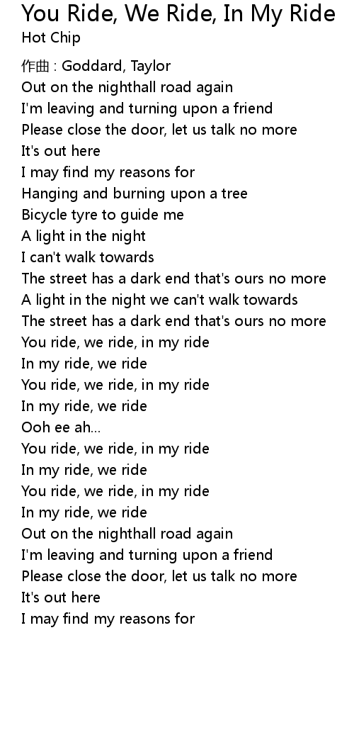 | You ride, we ride, in my ride | |