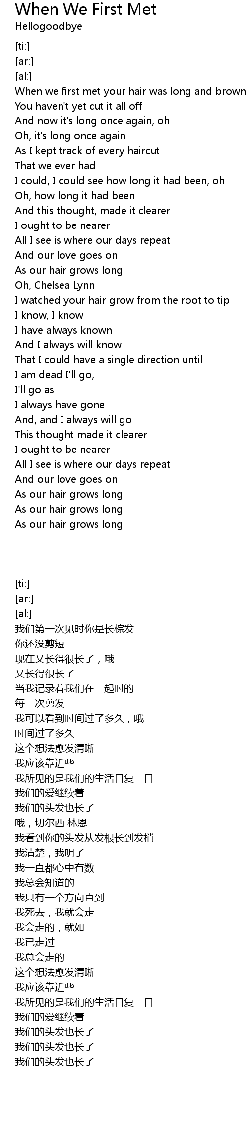 [00:00.44] When we first met your hair was long and brown