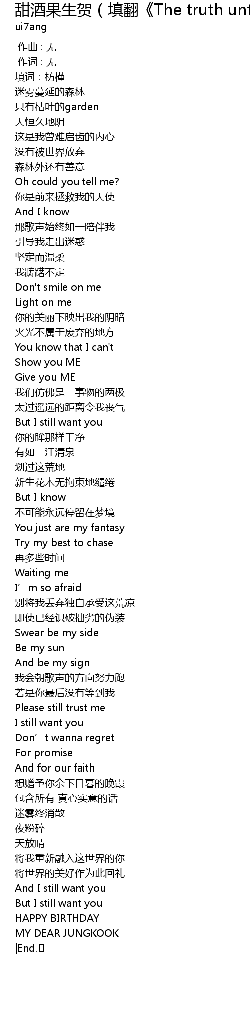 | Song | 甜酒果生贺(填翻《The truth untold》)(Cover:BTS) |