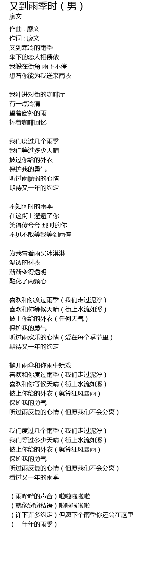| (许下许多约定)但愿下个雨季你还会在这里 | |