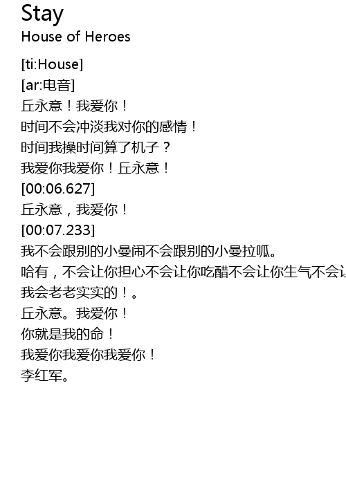 | [00:06.677] | qiu yong yi, wo ai ni! |