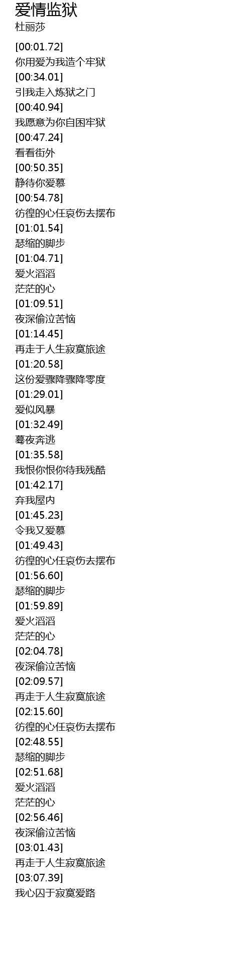 | [00:30.55] | 你用爱为我造个牢狱 |