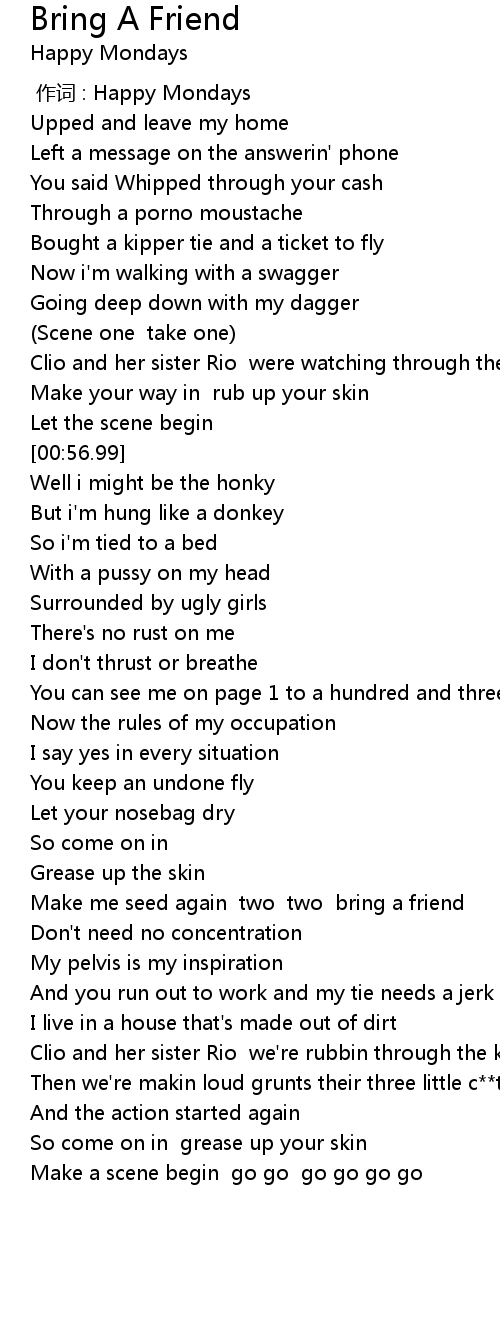 | [01:54.88] | Make me seed again two two bring a friend |