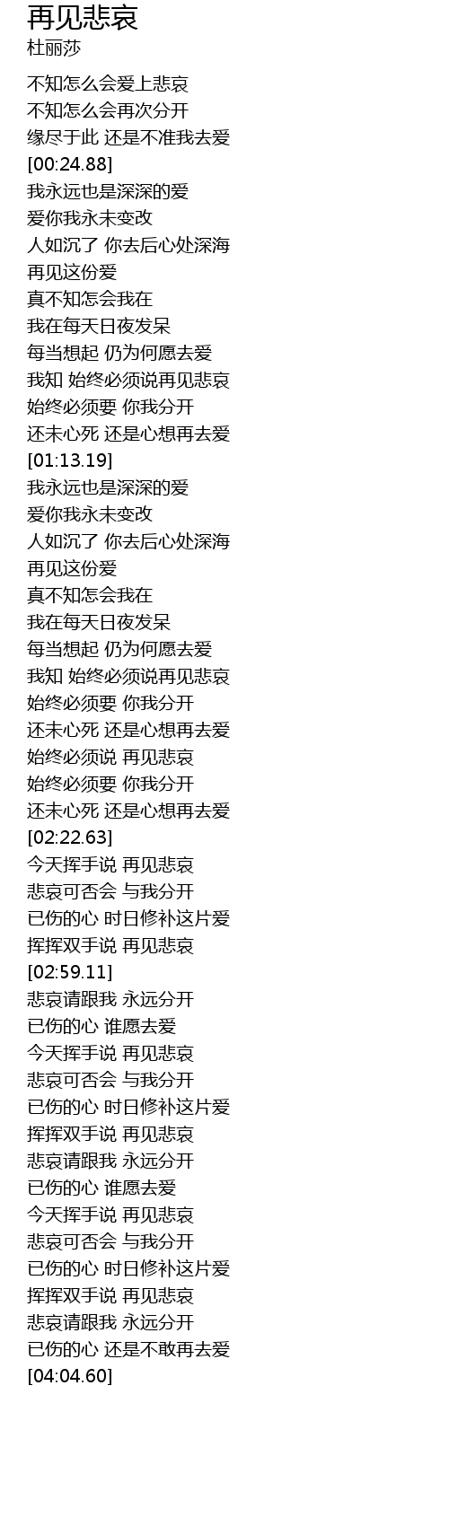 | [00:59.12] | 我知 始终必须说再见悲哀 |
