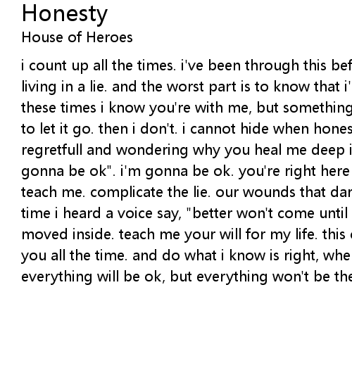 i count up all the times. i've been through this before but not so bad. i'm living in a lie. and the worst part is to know that i'm not right. and through these times i know you're with me, but something's got to change. i tell myself to let it go. then i don't. i cannot hide when honesty says i've lied. regretfull and wondering why you heal me deep inside. and whisper to me, "it's gonna be ok". i'm gonna be ok. you're right here with me. here with me. you teach me. complicate the lie. our wounds that darken almost daily. and all the time i heard a voice say, "better won't come until i change me." then something moved inside. teach me your will for my life. this choice is mine. i'll follow you all the time. and do what i know is right, when i can't find my mind. everything will be ok, but everything won't be the same. and that's all right. |