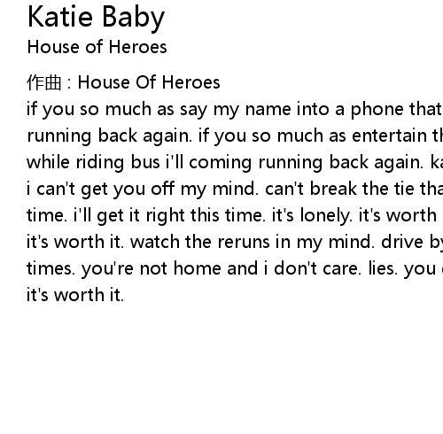 | if you so much as say my name into a phone that you dialed for my home i' ll come running back again. if you so much as entertain the thought of us that you had while riding bus i' ll coming running back again. katie baby you drive me crazy. i can' t get you off my mind. can' t break the tie that binds. but now is not the time. i' ll get it right this time. it' s lonely. it' s worth it. you better belive it' s worth it. watch the reruns in my mind. drive by your house two or three times. you' re not home and i don' t care. lies. you drive me crazy. it' s lonely. it' s worth it. |