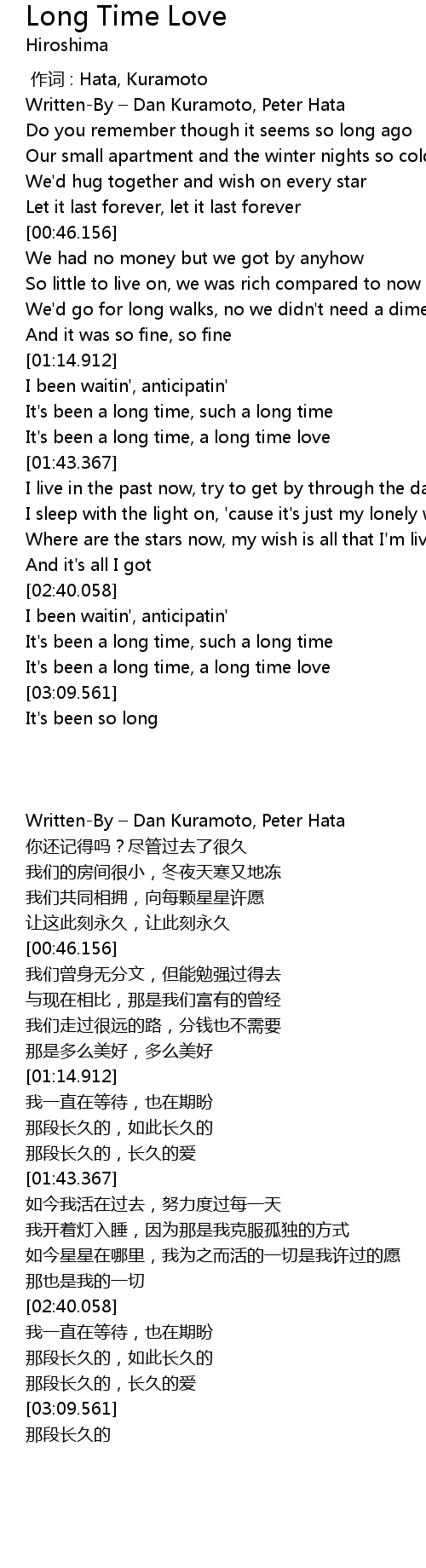 | [03:00.317] | It' s been a long time, such a long time |
