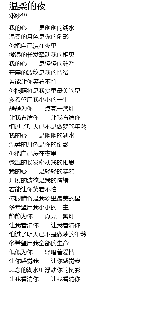 | [00:26.43] | 我的心 是幽幽的湖水 |