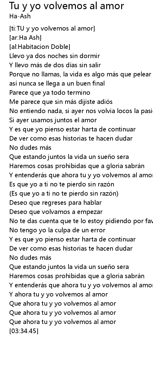 | [02:44.52] | Y entenderá s que ahora tu y yo volvemos al amor |