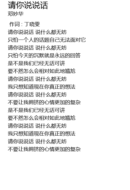 | [00:20.41] | 请你说说话 说什么都无妨 |