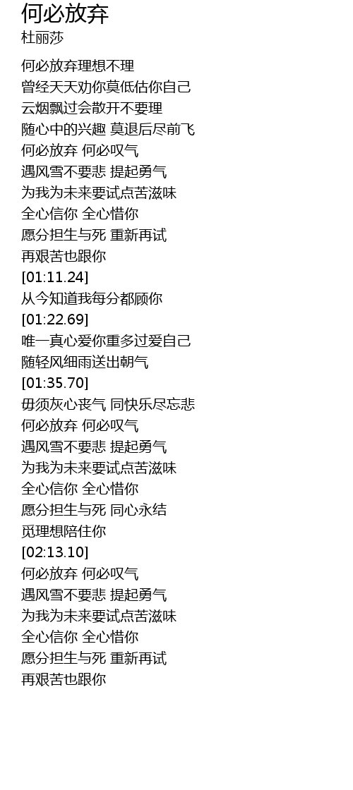 | [01:45.37] | hé bì fàng qì hé bì tàn qì |