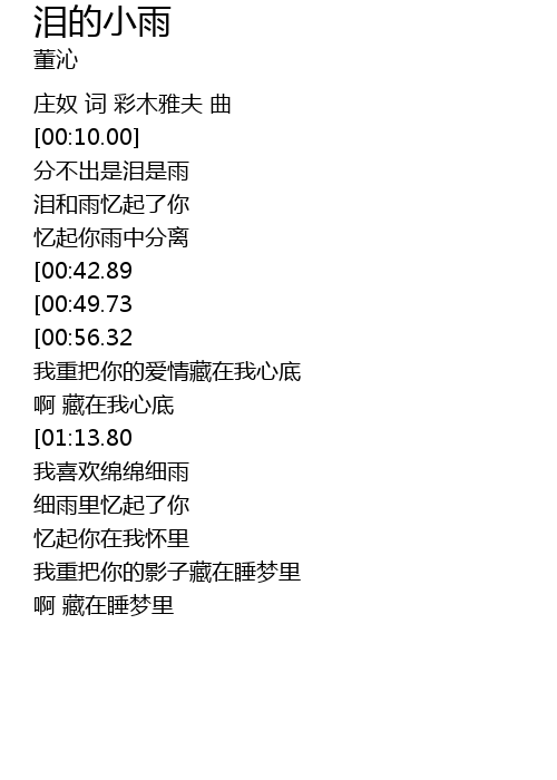 | [01:58.41] | 我喜欢绵绵细雨 |