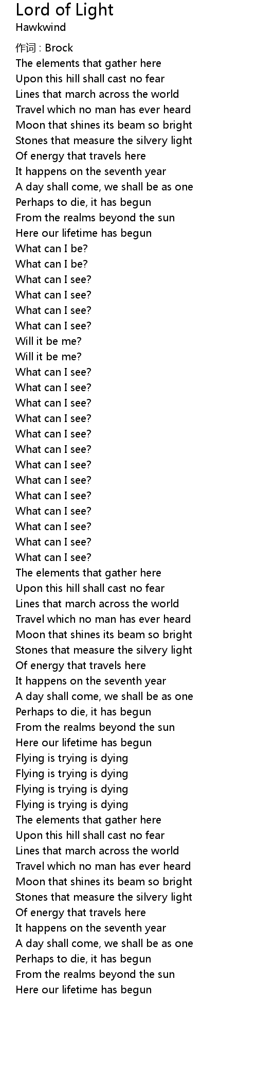 | Song | Lord of Light |