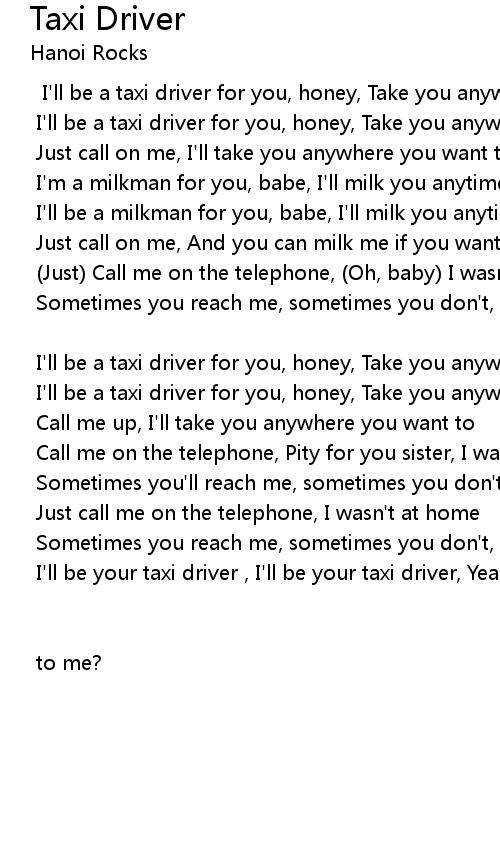 I'll be a taxi driver for you, honey, Take you anywhere you want to |
