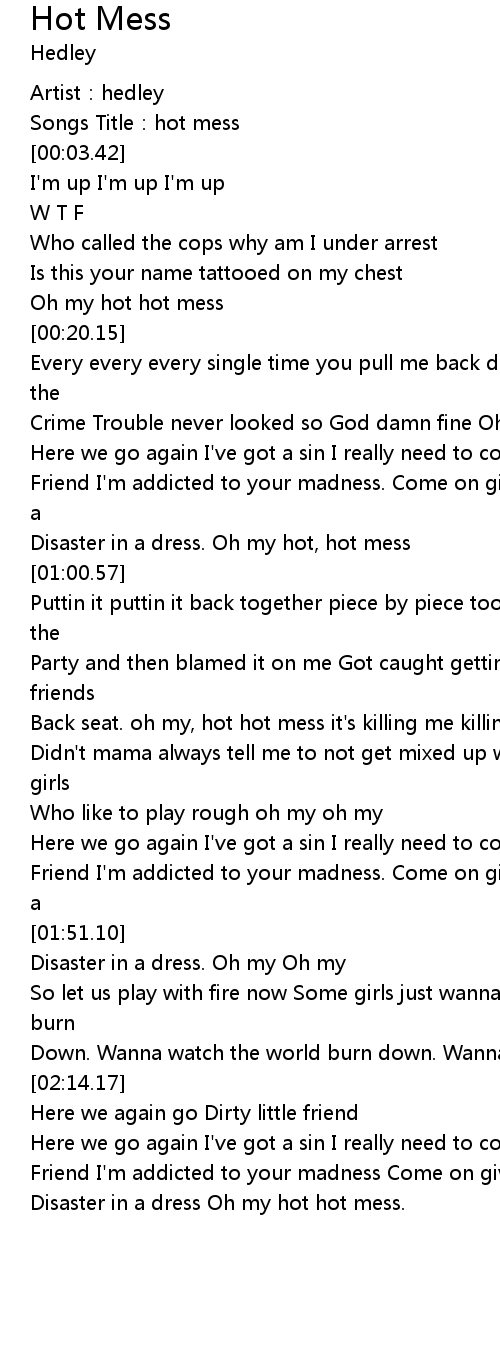 | [02:43.21] | Disaster in a dress Oh my hot hot mess. |