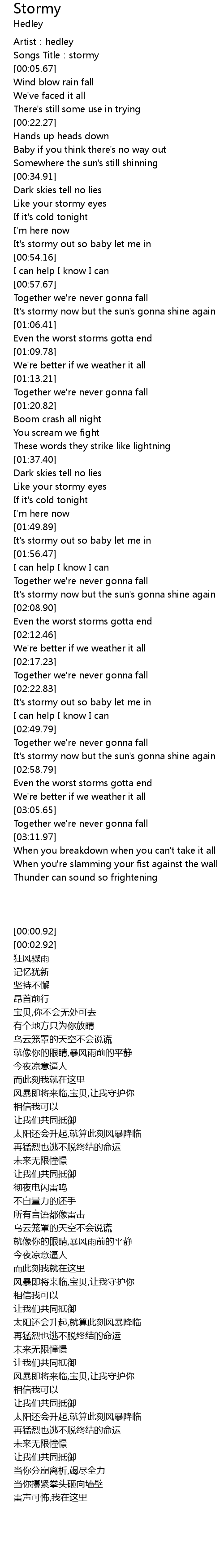 | [00:02.92] | Songs Title:stormy |