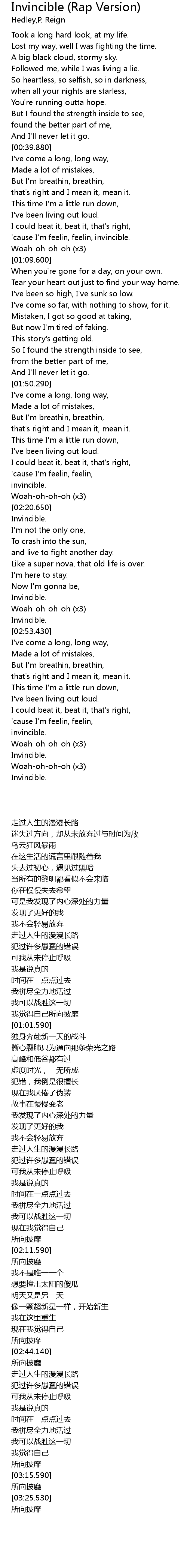 | [03:34.200] | Invincible. |