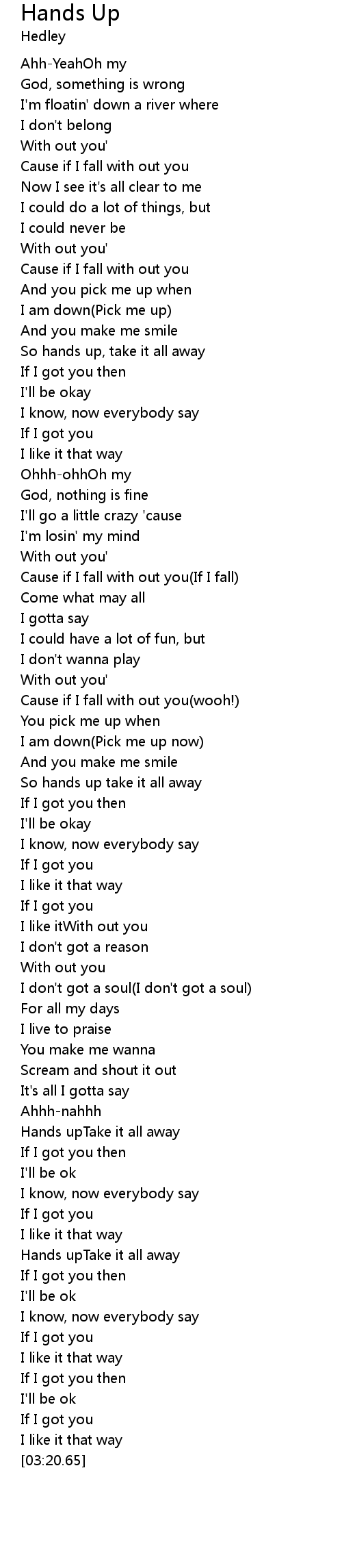 Hands upTake it all away |