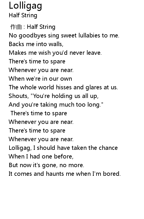 | [03:01.91] | Lolligag, I should have taken the chance |