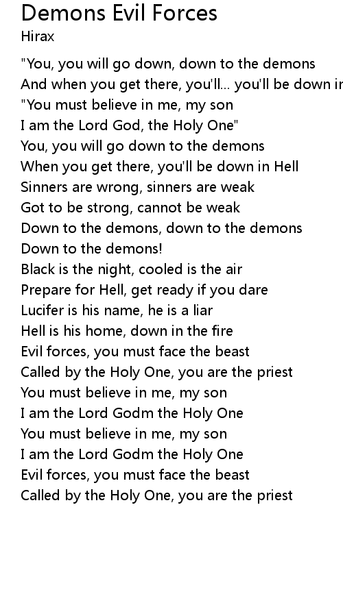 "You, you will go down, down to the demons |