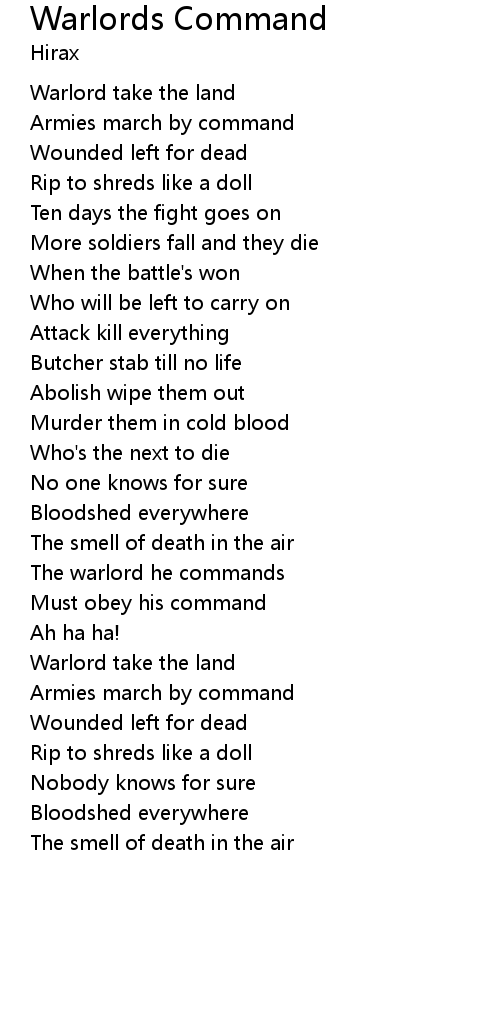 Warlords Command Lyrics