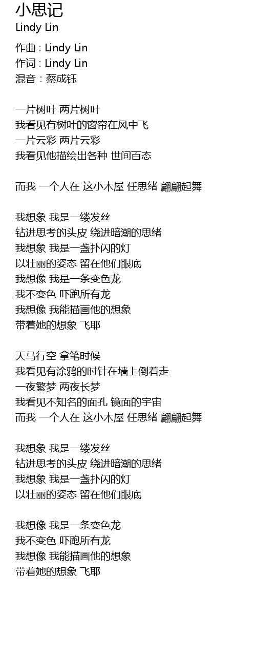 | 作词 : Lindy Lin | |