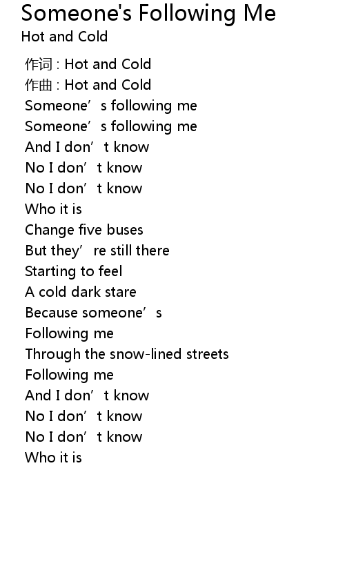 | [00:00.000] | 作词 : Hot and Cold |
