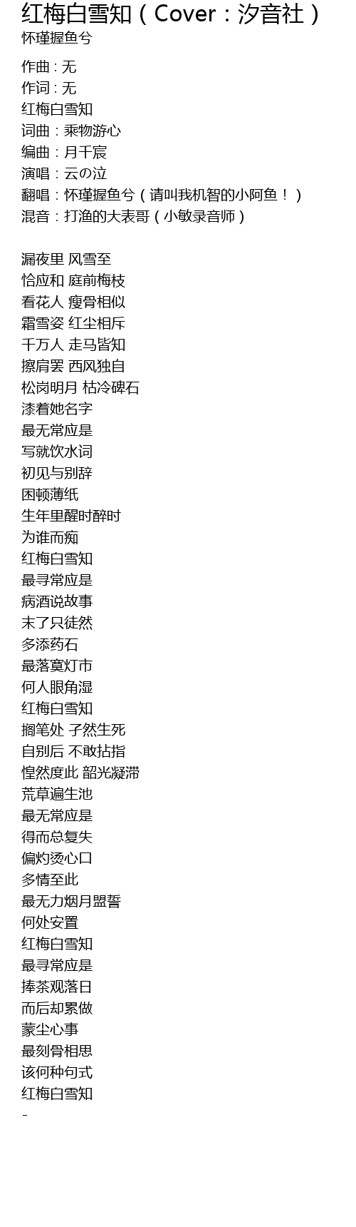 | 翻唱:怀瑾握鱼兮(请叫我机智的小阿鱼!) | |
