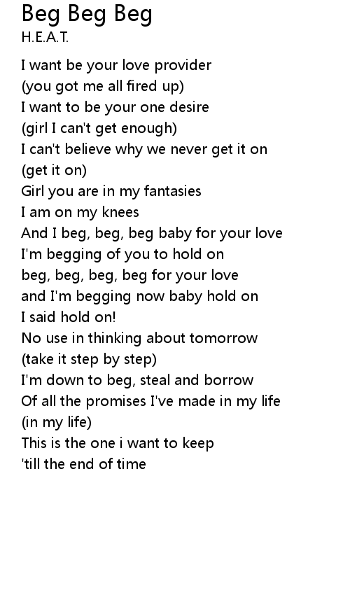 beg, beg, beg, beg for your love |