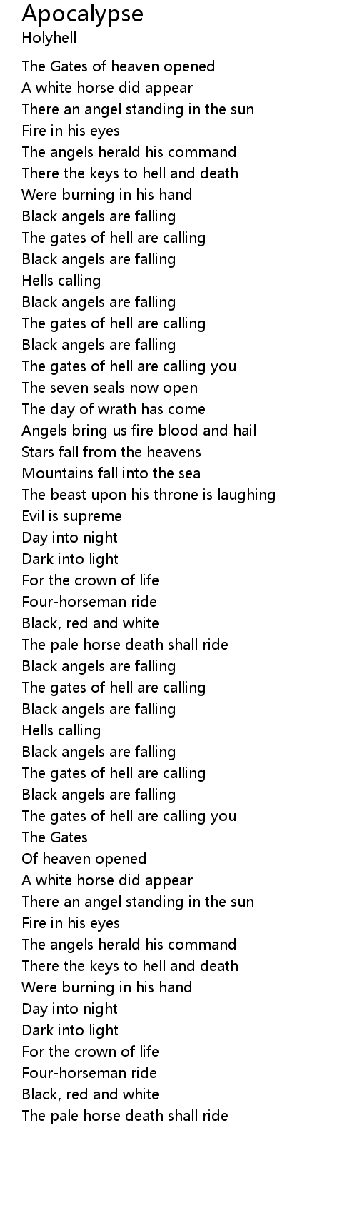 | Angels bring us fire blood and hail | |