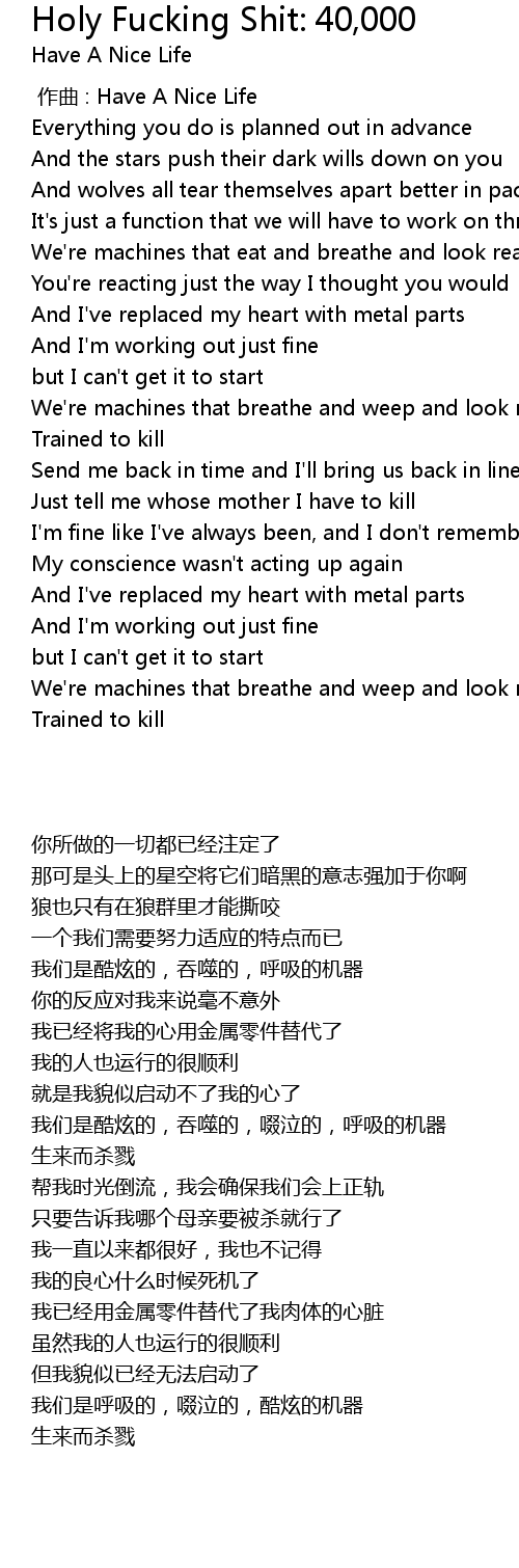 | [00:00.000] | zuo qu : Have A Nice Life |