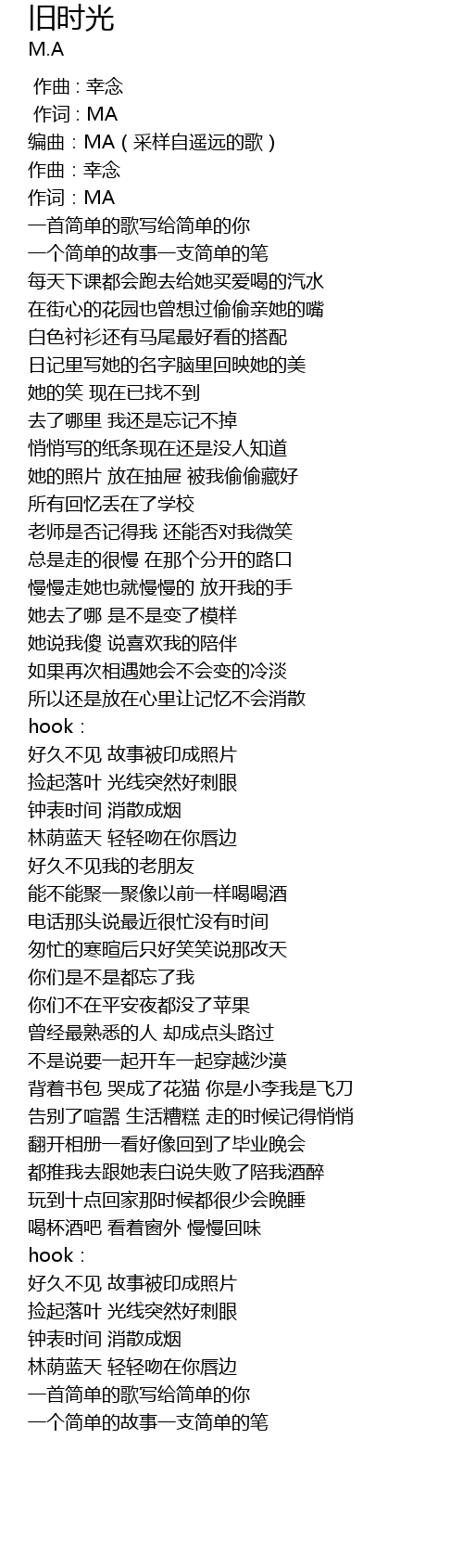 | [00:01.079] | 编曲:MA(采样自遥远的歌) |