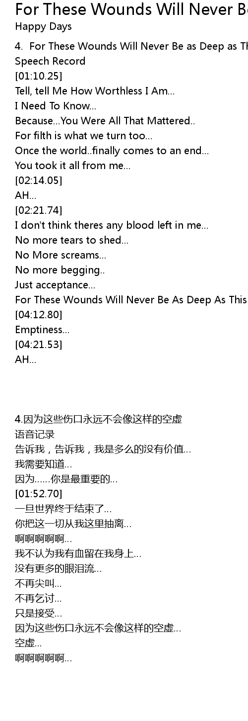 4. For These Wounds Will Never Be as Deep as This Emptiness |