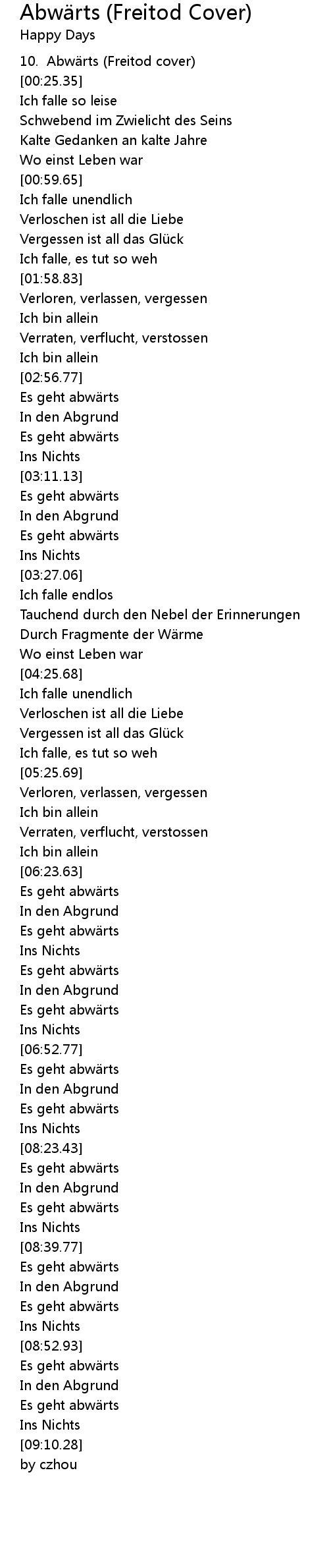 | [00:00.00] | 10. Abwärts (Freitod cover) |