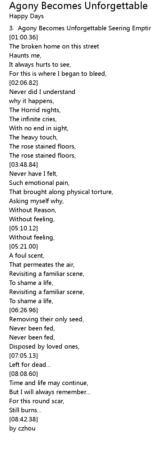 3. Agony Becomes Unforgettable Seering Emptiness |