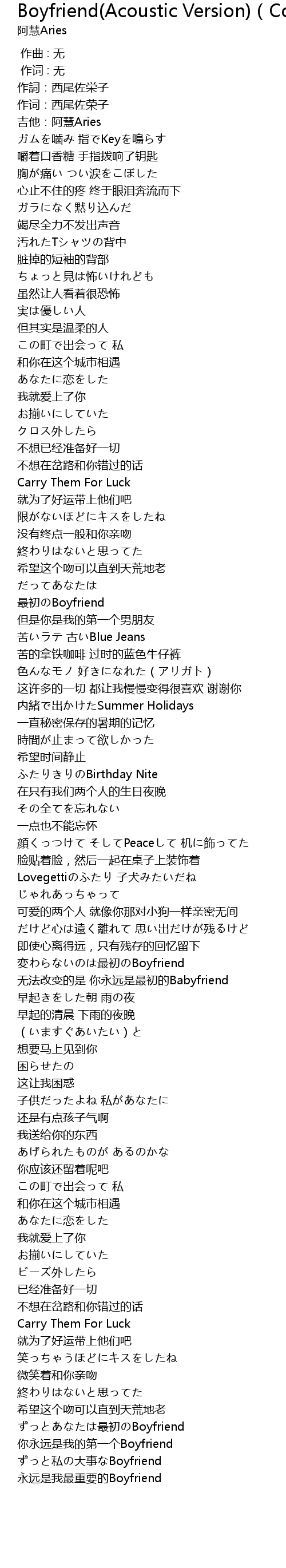| [02:34.981] | 変わらないのは最初のBoyfriend |