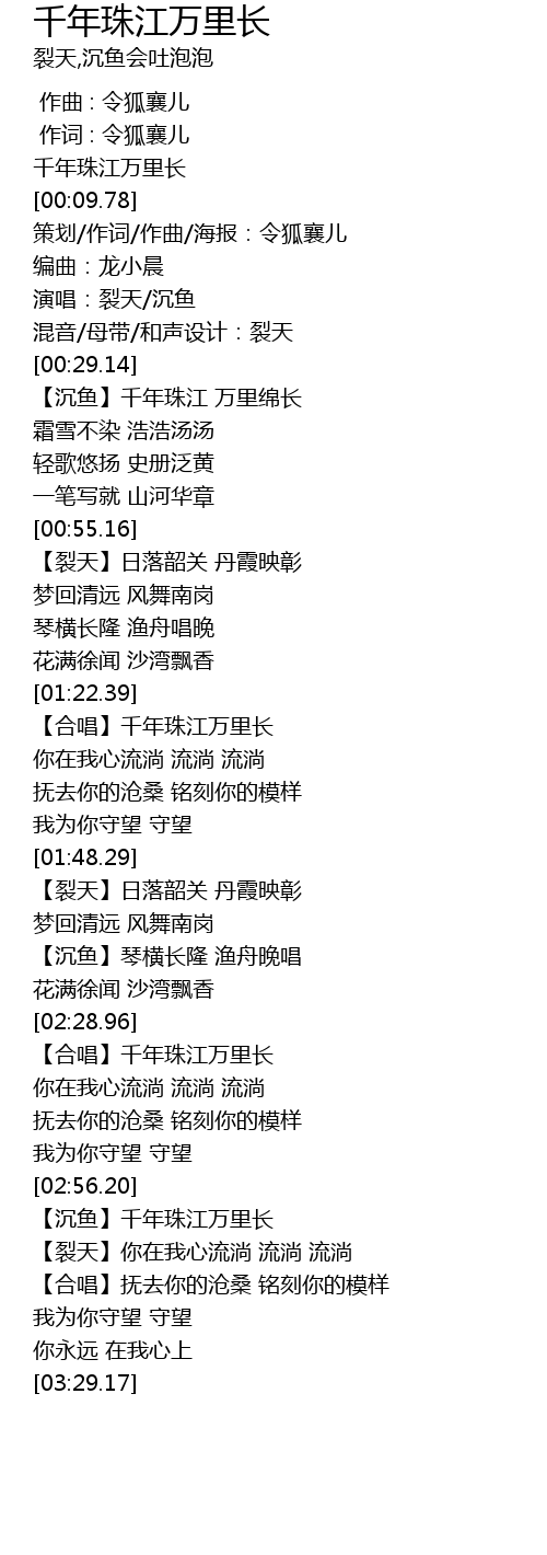 | [00:00.00] | qian nian zhu jiang wan li chang |