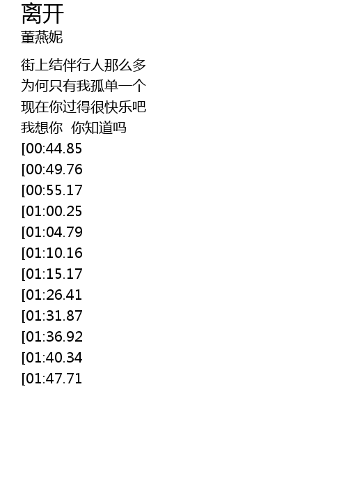 | [02:53.85][01:26.41] | 我只能悄悄的离开 |