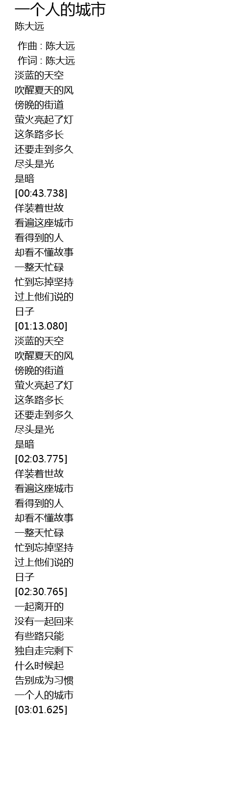 | [00:00.000] | zuò qǔ : chén dà yuǎn |
