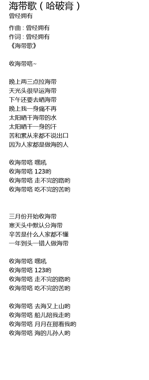 | shōu hǎi dài gē qù hǎi yòu shàng shān yō | |