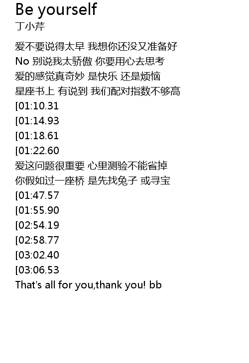 | [03:23.52][01:22.60] | chú fēi nǐ zhǐ yǒu duì wǒ zuì hǎo |