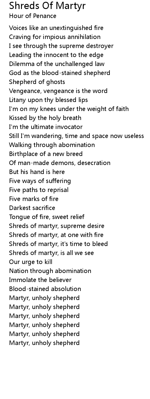 Shreds Of Martyr Lyrics