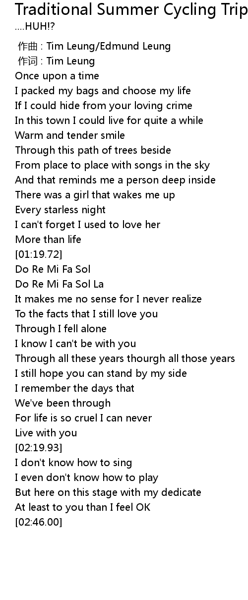 | [00:01.00] | 作词 : Tim Leung |