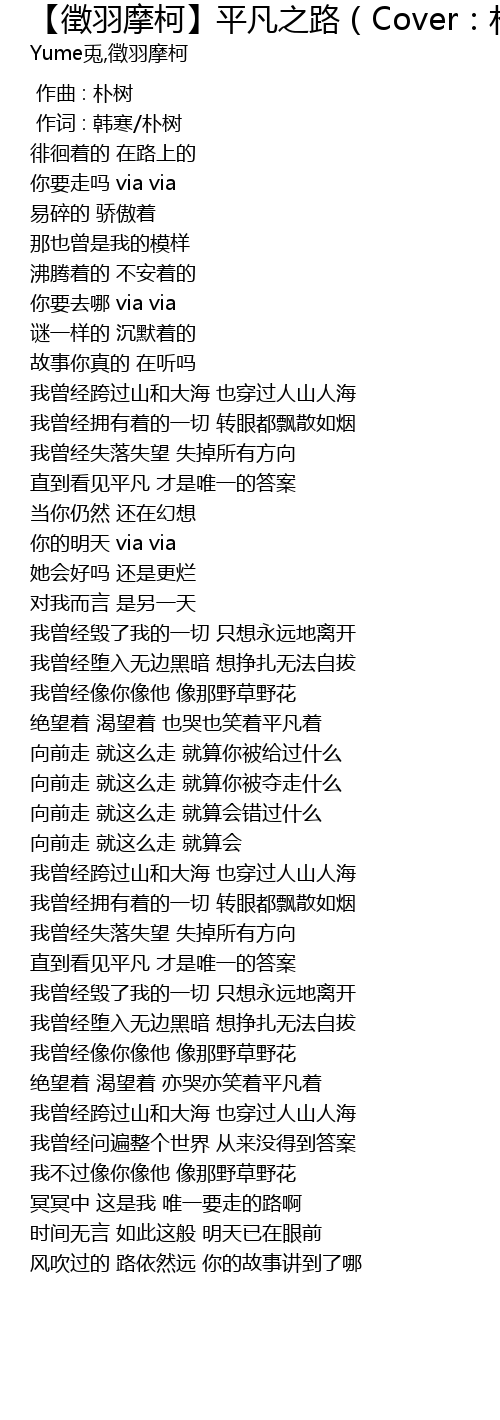| [00:00.000] | 作曲 : 朴树 |