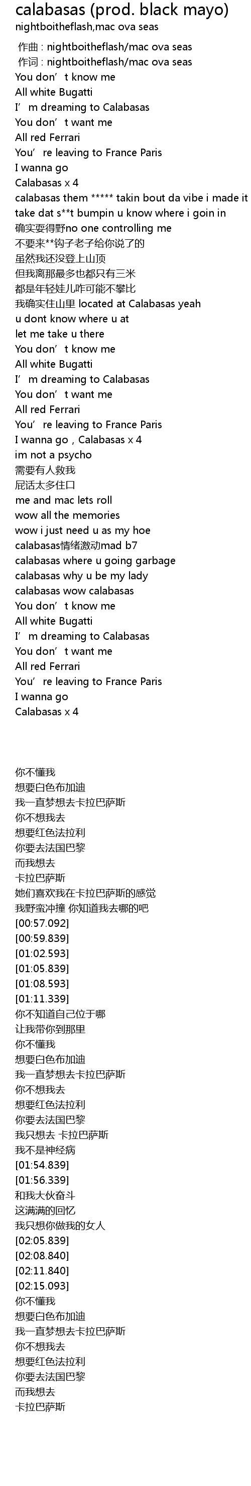 | [01:40.340] | I wanna go, Calabasas x 4 |