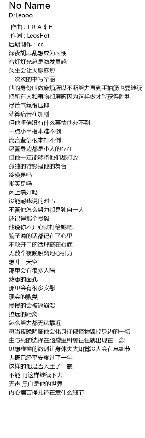 | [01:17.66] | 每当夜晚降临他会化身抑郁怪物毁掉身边的一切 |