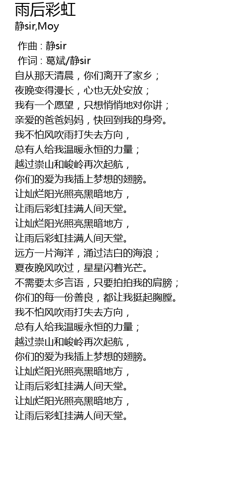 | [03:43.829] | 让雨后彩虹挂满人间天堂。 |