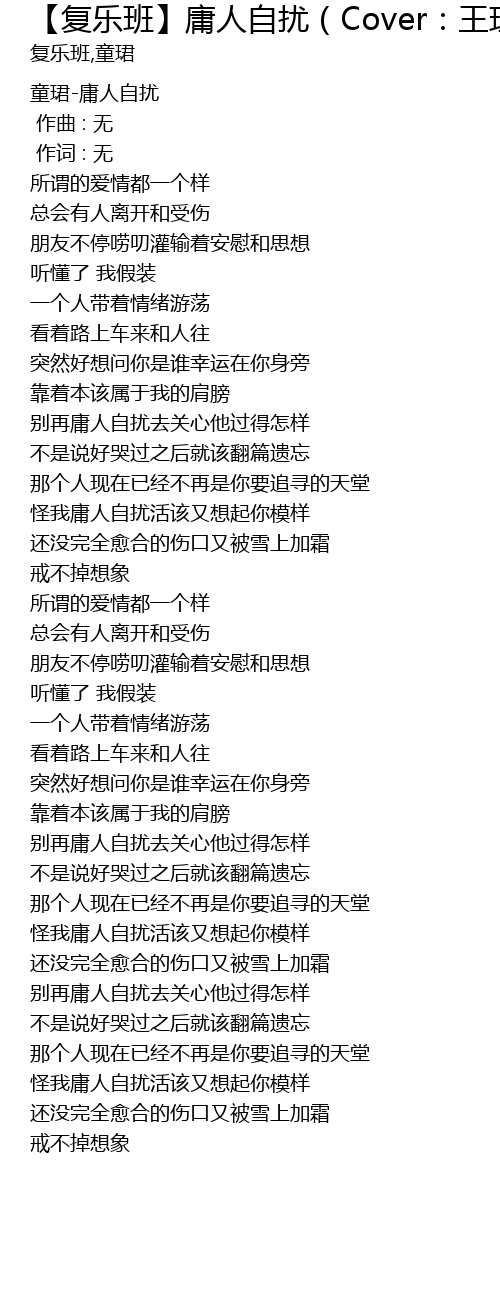 | [01:12.31] | 别再庸人自扰去关心他过得怎样 |