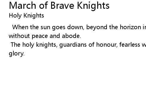 | The holy knights, guardians of honour, fearless warriors fight to earn eternal glory. |